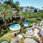 Con una piscina y una terraza, 1081 - Golden Beach Jacuzzi Marbella está situado en el distrito Elviria, a alrededor de 10 minutos en coche de la Marbella Golf & Country Club. A alrededor de 10 minutos en coche del apartamento de 140 m^2 se encuentra la Playa Cabopino.